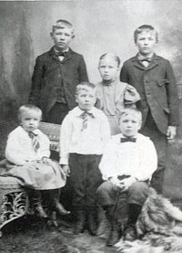 Children of Willard Ricks and Emma Emelia Jeppesen Ricks, back row: Willard Nelson, Sophronia and Clarence Edwin, front row: Warren Arthur, Leo J. and Theodore